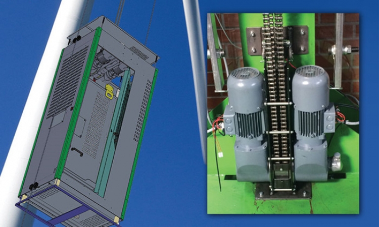 带有手动释放装置的“降落伞”制动器集成在动力传动系统中。当提升机的绳索滑轮达到2000 rpm的速度时,制动器打开。如果在升降期间发生电力供应损失,则制动器允许维护人员到达下一个出口平台,在那里他们可以进入梯子以在塔上向上或向下移动。经过三个月的测试,S系列减速机配三相制动电机表现的完美无瑕。